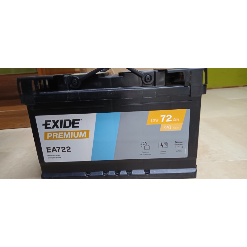 A Bateria Exide Premium EA722, da série Exide Premium, é uma bateria de arranque de carro com 72Ah de capacidade e com arranque de 720A.